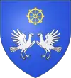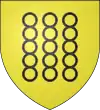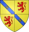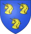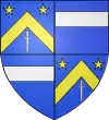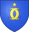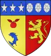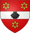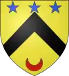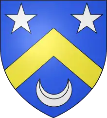 D'or, au chevron de sable, accompagné en chef de trois étoiles d'azur et en pointe d'un croissant de gueules.[4],[5] Alias d'azur, au chevron d'or, accompagné de trois étoiles en chef, et d'un croissant en pointe, le tout d'or. |