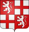D'azur aux trois broyes d'or liées d'argent, au chef d'argent chargé d'un lion issant de gueules.[8] | |
