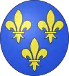 de France moderne, qui est d'azur aux trois fleurs de lys d'or avec un trait de sable sur la ligne de parti. | |