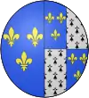 parti de mi-parti de France moderne, qui est d'azur aux trois fleurs de lys d'or et de Bretagne, qui est d'hermine. | |