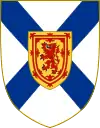 Nouvelle-Écosse D’argent au sautoir d’azur à un écu brochant d’or chargé d’un lion de gueules enclos dans un double trescheur fleuré-contre-fleuré du même. ![]() D’or à la fasce ondée d’azur chargée d’un saumon d’argent nageant accompagné de trois chardons au naturel. |