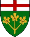 Ontario De sinople à une branchette d’érable à trois feuilles d’or, au chef d’argent chargé d’une croix de gueules. |