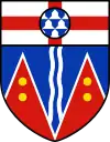 Nouveau-Brunswick D’or à la galère antique avec ses rames voguant sur une mer au naturel au chef de gueules chargé d’un léopard d’or. |