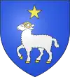 Cénaret anciens D'azur, au mouton paissant, d'argent, accolé et clariné de gueules. - support deux lions - cimier: un paon rampant [9]. |