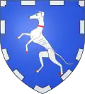 D'azur, au lévrier rampant d'argent, colleté et onglé de gueules, à la bordure denticulée d'argent.[6] |