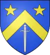 D'azur, au chevron d'or, accompagné en chef de deux étoiles du même, et en pointe d'une épée d'argent mise en pal, la garde en haut[62],[63],[64]. |