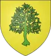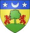 D'or, à un chêne de sinople terrassé de même, accosté de deux lions mornés de gueules, au chef d'azur, chargé d'un croissant d'argent entre deux étoiles de même[67]. |