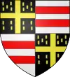 D'or à la fasce échiquetée d'argent et de gueules de trois tires au lion issant de gueules en chef.[15]. |