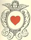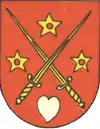de gueules à deux épées d'or (parfois des pistolets d'arçon) mises en sautoir, accompagnées de trois étoiles du même, une en chef, deux aux flancs et d'un cœur d'argent en pointe.[3] |