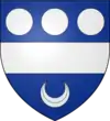 d'azur à la fasce accompagnée en chef de deux besants et en pointe d'un croissant, le tout d'argent.[7] |