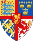 D'azur semé de cœurs à trois léopards d'argent couronnés d'or. |