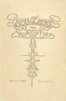 En 1898, Arno Holz publie son chef-d'œuvre, le volume de poésie Phantasus (de), une œuvre dans laquelle il affiche sa virtuosité linguistique. L'ouvrage décrit le milieu des poètes affamés méprisés de son propre quartier de Wedding à Berlin. Holz travaille sur ses poèmes tout au long de sa vie créatrice, modifiant souvent, écartant et revisitant ses textes variés. Une caractéristique typographique de la poésie est que toutes les lignes sont centrées sur un axe donnant à la fois un bord irrégulier droit et gauche (courant à l'époque moderne des ordinateurs mais rare à l'époque).