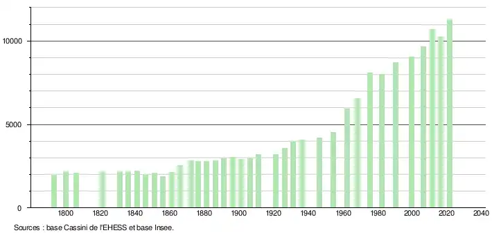 Pour la période 1971-2000, la température annuelle moyenne est de 11,6 °C, avec une amplitude thermique annuelle de 15,3 °C. Le cumul annuel moyen de précipitations est de 666 mm, avec 10,4 jours de précipitations en janvier et 7,9 jours en juillet[24]. Pour la période 1991-2020, la température moyenne annuelle observée sur la station météorologique la plus proche, située sur la commune de Brétigny-sur-Orge à 5 km à vol d'oiseau[26], est de 11,9 °C et le cumul annuel moyen de précipitations est de 628,9 mm[27],[28]. Pour l'avenir, les paramètres climatiques de la commune estimés pour 2050 selon différents scénarios d'émission de gaz à effet de serre sont consultables sur un site dédié publié par Météo-France en novembre 2022[29].