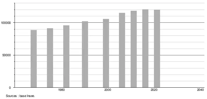 - Population municipale légale en vigueur au 1er janvier 2024, millésimée 2021, définie dans les limites territoriales en vigueur au 1er janvier 2023, date de référence statistique : 1er janvier 2021.