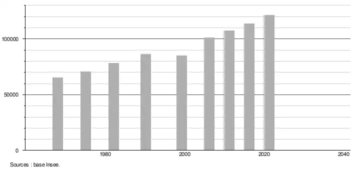 - Population municipale légale en vigueur au 1er janvier 2024, millésimée 2021, définie dans les limites territoriales en vigueur au 1er janvier 2023, date de référence statistique : 1er janvier 2021.