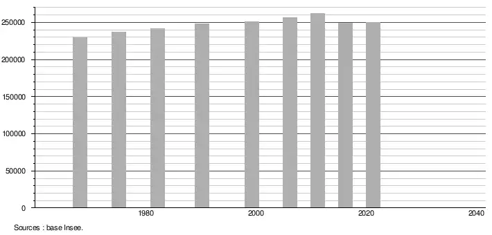 - Population municipale légale en vigueur au 1er janvier 2024, millésimée 2021, définie dans les limites territoriales en vigueur au 1er janvier 2023, date de référence statistique : 1er janvier 2021.