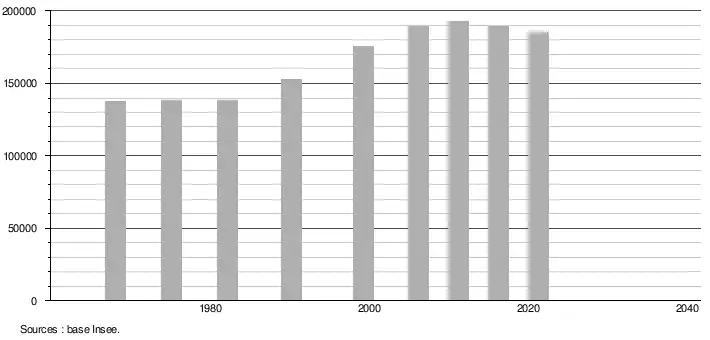 - Population municipale légale en vigueur au 1er janvier 2024, millésimée 2021, définie dans les limites territoriales en vigueur au 1er janvier 2023, date de référence statistique : 1er janvier 2021.