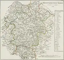 Après le troisième partage de la Pologne de 1793 à 1807, le territoire autour de la ville de Krotoschin en Grande-Pologne appartient à l'arrondissement de Krotoschin dans la province prussienne de Prusse-Méridionale[2]. Grâce à la paix de Tilsit, la région devient une partie du duché de Varsovie en 1807. Après le Congrès de Vienne, elle tombe de nouveau aux mains du royaume de Prusse le 15 mai 1815 et devient une partie du district de Posen dans le grand-duché de Posen[3].