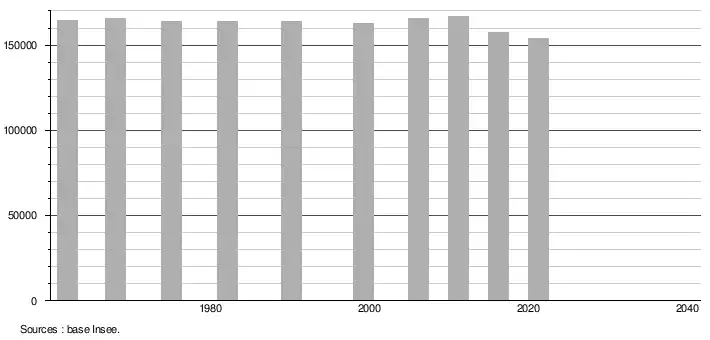 - Population municipale légale en vigueur au 1er janvier 2024, millésimée 2021, définie dans les limites territoriales en vigueur au 1er janvier 2023, date de référence statistique : 1er janvier 2021.