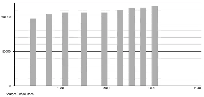 - Population municipale légale en vigueur au 1er janvier 2024, millésimée 2021, définie dans les limites territoriales en vigueur au 1er janvier 2023, date de référence statistique : 1er janvier 2021.