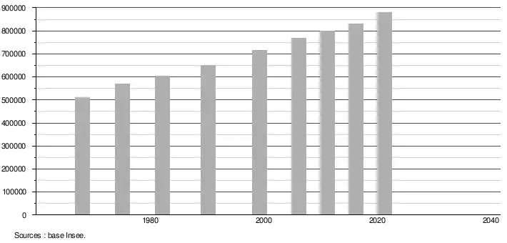 - Population municipale légale en vigueur au 1er janvier 2024, millésimée 2021, définie dans les limites territoriales en vigueur au 1er janvier 2023, date de référence statistique : 1er janvier 2021.