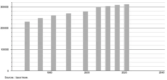 - Population municipale légale en vigueur au 1er janvier 2024, millésimée 2021, définie dans les limites territoriales en vigueur au 1er janvier 2023, date de référence statistique : 1er janvier 2021.