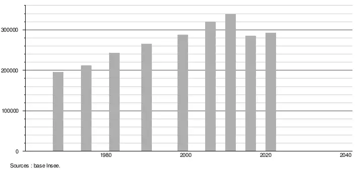 - Population municipale légale en vigueur au 1er janvier 2024, millésimée 2021, définie dans les limites territoriales en vigueur au 1er janvier 2023, date de référence statistique : 1er janvier 2021.