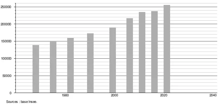 - Population municipale légale en vigueur au 1er janvier 2024, millésimée 2021, définie dans les limites territoriales en vigueur au 1er janvier 2023, date de référence statistique : 1er janvier 2021.