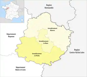 - 2006 : redécoupage des arrondissements de la Sarthe[1]. L'arrondissement du Mans compte désormais 12 cantons (-11), l'arrondissement de Mamers compte 16 cantons (+6) et celui de La Flèche a 12 cantons (+5).