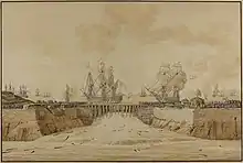 Le fort de l’est de la digue est détruit par la marine française.