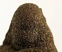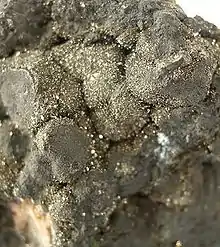 | Couleur | gris-noir mat à noir, gris blanc à blanc d'étain en état inaltéré, gris foncé, gris moyen à foncé avec croûtes blanches d'altération, gris métallique |