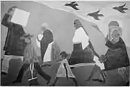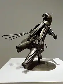 La peintre Faith Ringgold, connue pour son art politisé, a été décrite comme ayant un « magnifique coup de poing »[42]. Sa série The American People Series #20: Die, qui dépeint un affrontement sanglant entre des figures cubistes noires et blanches, a été accrochée en face des Demoiselles d'Avignon de Pablo Picasso dans le MoMA nouvellement rénové en 2019, pour mieux engager une conversation entre la « force sauvage » de leurs compositions respectives[42],[43],[44]. L'artiste conceptuel Fred Wilson (en) se concentre sur d'autres types de composition, « juxtaposant des objets tout à fait anormaux, tels qu'une statue d'esclave et un service de porcelaine fine ». Bénéficiant de la bourse MacArthur en 1999, son travail encourage « le déballage et le bouleversement des hypothèses sur la race et l'histoire de chacun »[45],[46].