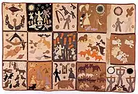 Harriet Powers (en) (1837-1910) était une artiste folklorique afro-américaine et une fabricante de courtepointes originaire de la Géorgie rurale, aux États-Unis, née en esclavage. Désormais reconnue au niveau national pour ses courtepointes, elle utilisait des techniques d'application traditionnelles pour y inscrire des légendes locales, des récits bibliques et des événements astronomiques. Seuls deux de ses derniers courtepointes ont survécu : Bible Quilt 1886 et Bible Quilt 1898. Ses courtepointes sont considérés comme l'un des plus beaux exemples de courtepointe sudiste du XIXe siècle[15],[16].