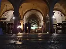 Les arcatures entrecroisées du bas-côté du chœur offrent d'intéressants exemples du développement du chapiteau à godrons que l'on peut dater exactement de 1093 à 1096. Les colonnes jumelles ont des chapiteaux variés, parfois le même tailloir réunit le chapiteau cubique à chacune d'elles ce qui donne l'aspect d'un chapiteau à godron rudimentaire et pour d'autres, trois ou quatre demi-cercles les couronnent[5].