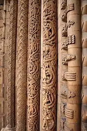 Les grosses piles cylindriques sont couvertes de losanges, de fines cannelures et de chevrons habilement incisés, gagnant même les arcades, les doubleaux et les ogives. Ces qualités remontent très loin dans l'histoire de l'architecture saxonne et peuvent correspondre à une forme de réponse de l'Angleterre à ses premiers contacts avec le Continent[9].