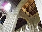 De la cathédrale normande peu a survécu, le chœur jusqu'au triforium, le transept sud et quelques éléments du transept nord et de la nef.
