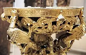 On trouve aussi des ciboires et des patènes funéraires souvent avec des décors et surtout des crosses, de petits objets à usage domestique et religieux, des stylets, lampes à huile, boucles de ceintures et des pieds de chandeliers, couvercles d'encensoirs et de petits Christ en croix plus élaborés.