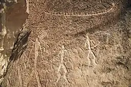 Des images reflétant la magie, des notions totémiques d'ancien peuple, leurs coutumes religieuses et leurs scènes de chasse conservées sur des rochers dans Gobustan témoignent de l'art primitif à l'époque paléolithique. Hommes et femmes, scènes de pêche, images de gens qui dansent sur les rochers, chasseurs de chevaux au galop, silhouette solitaire d'un faucheur avec une faucille, danses rondes de personnages rappelant le yalli, bateaux avec des rameurs, panneaux solaires et divers animaux sauvages dépeint là[2].
