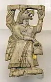 | Figurines en bronze, parties du trône conservé à Saint-Pétersbourg au musée de l'Ermitage, Russie. Les figurines en bronze ont conservé des traces de dorure. Les visages des bêtes sauvages et de la divinité sa trouvant à droite étaient en pierre, probablement incrustés de pierres précieuses, de sorte que tous les visages ont été brisés et non conservés. | ||||