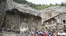 Il y avait eu un énorme élan de construction de temples et de monastères bouddhistes, mais en 845, tous ont été confisqués par le gouvernement, et la grande majorité a été détruite. Le matériau de construction le plus utilisé pour les bâtiments autres que les tours, les pagodes et les travaux militaires des Tang était encore le bois, matériaux très périssable et peu durable s'il n'est pas entretenu[13]. L' architecture excavée dans la roche des célèbres sites encore visibles de nos jours survit bien sûr beaucoup mieux à la négligence, mais les Chinois ont généralement laissé les façades extérieures des temples des grottes sans décorations, contrairement aux équivalents indiens sur des sites comme les grottes d'Ajanta .