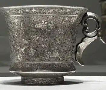 La ferronnerie de l'élite Tang, qui nous est parvenue principalement à travers des coupes et des miroirs en bronze ou en argent, est souvent de superbe qualité, décorée à l'aide d'une variété de techniques et souvent incrustée d'or et d'autres métaux. Un dépôt exceptionnellement raffiné est la collection des biens personnels de l'empereur Shōmu, dans le Tōdai-ji à Nara au Japon, donnés au sanctuaire bouddhiste par sa fille l'Impératrice Kōmyō après la mort de son père en 756. En plus de la ferronnerie, des peintures et de la calligraphie, cet ensemble comprend des meubles, du verre, des laques et des pièces en bois tels que les instruments de musique et les jeux de société. La plupart ont probablement été fabriqués en Chine, bien que certains soient japonais et d'autres Moyen-Orientaux[11].