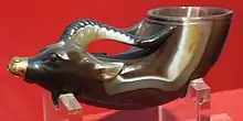 Un autre dépôt important a été découvert en 1970 à Xi'an lorsque le trésor du village de Hejia a été découvert lors d'un chantier. Placé dans deux grands pots en céramique de 64 cm de haut et un en argent de 25 cm de haut, il s'agissait d'une grande collection de plus d'un millier d'objets, représentant au total une collection plutôt déroutante. Plusieurs d'entre eux étaient des récipients en or ou en argent et d'autres objets de la plus haute qualité, ainsi que des sculptures en pierre dure, en jade et en agate et des pierres précieuses. Elle a probablement été cachée à la hâte lors de la révolte d'An Lushan, au cours de laquelle la capitale Tang a été prise plus d'une fois. De nombreux objets ont été importés, principalement le long de la route de la soie, en particulier de Sogdiane, et d'autres montrent l'influence sogdienne[12]. Deux objets du trésor (illustrés) figurent sur la liste officielle très restreinte des reliques culturelles chinoises interdites d'exposition à l'étranger. Le trésor se trouve maintenant au Musée d'histoire du Shaanxi.