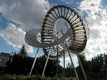 | De Broin, Michel | Révolutions | 2003 | Aluminium | Située a l’extérieur, cette sculpture évoque les escaliers courbes des rues de Montréal. | ![]() | ||