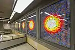 | Bernatchez, Patrick[7] | Trois mosaïques | 2021 | Céramique | Série de trois mosaïques en tons de bleu présentant des images photographiques, situées dans le nouvel édicule et le tunnel vers le CUSM. | |||