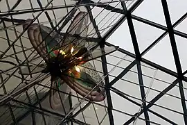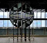 | De la Savane | Orange | Lemieux, Maurice | Calcite | 1984 | Acier inoxydable | Sculpture en acier reflétant les rayons du soleil provenant du puits de lumière situé au-dessus. | ![]() |