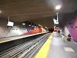 | Tremblay-Gillon, Michèle | Murale | 1976 | Béton peint | Intégrée à l'architecture de la station, l’œuvre se compose de formes rouges, violettes et vertes le long des murs. | ![]() | ||