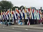 | Raby, Marcel | Murale | 1976 | Béton, céramique | Murale constituée de cercles en béton pointillées d'éléments en céramique évoquant les participants olympiques. | |||