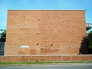 | Purdy, Richard et Hébert François | Tango de Montréal | 2000 | Murale extérieure reproduisant un poème de Gérald Godin. | ![]() | |||