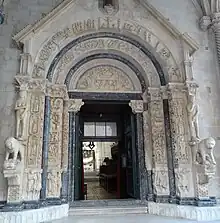 ![]() Cathédrale de Trogir : le portail de Radovan. |