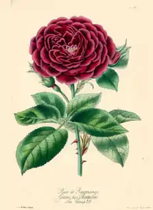 Ce rosier aux fleurs très doubles en rosettes régulières figure en bonne place dans les catalogues d'amateurs de roses à l'aspect romantique, car il ravit par la couleur cramoisi pourpré de ses fleurs et son parfum prononcé. Sa floraison est très généreuse et remontante[2]. Ses fleurs mesurent 7 cm de diamètre[3]. Selon les auteurs, il est classé dans les roses de Portland[4] ou les hybrides remontants[5].